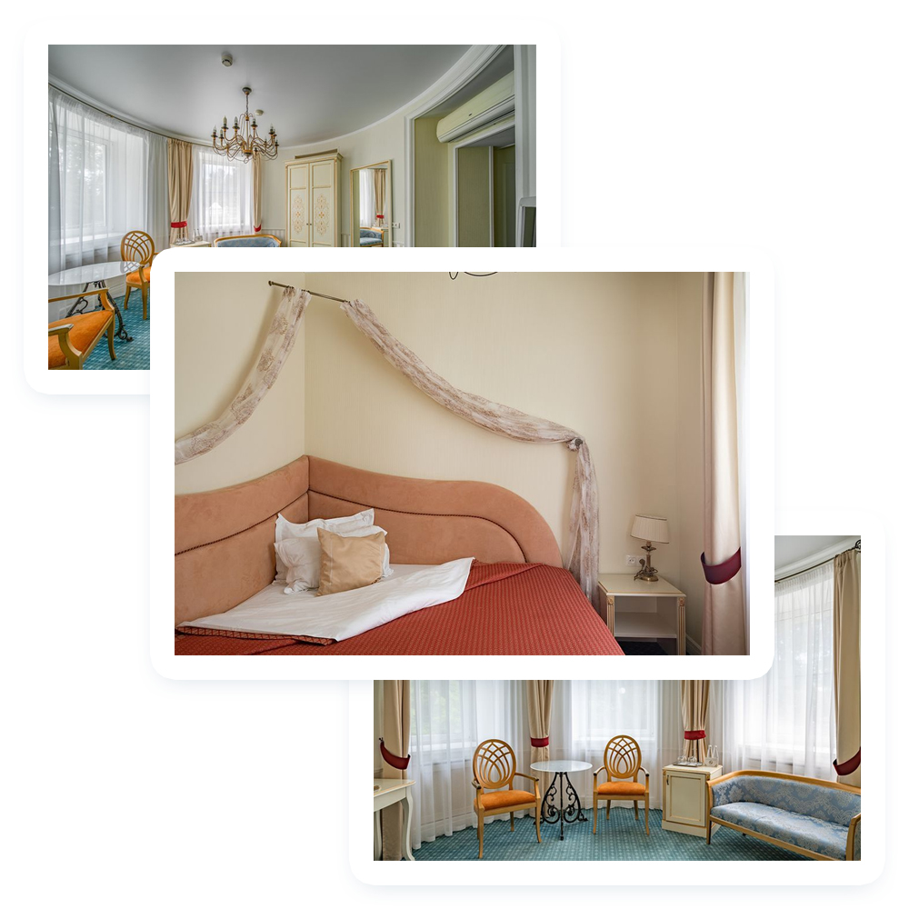 Просторные номера на комфортного размещения одного участника или для семейных пар.